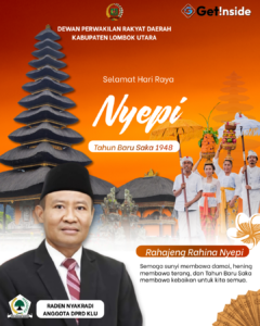 Ucapan Selamat Hari raya Nyepi Anggota DPRD KLU H. BURHAN M. NUR “Rahajeng Nyepi Saka 1948. Dumogi ngemolihang kerahayangan lan kedamaian ring sajeroning jagat”.