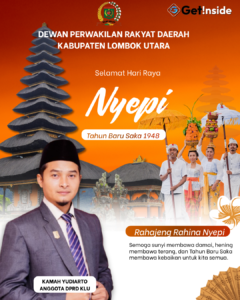 Ucapan Selamat Hari Raya Nyepi ‘ Kamah Yudiarto’ Anggota DPRD KLU “Rahajeng Nyepi, dumogi becik lan tentrem ring urip” (Selamat Nyepi, semoga hidup menjadi baik dan tenteram).